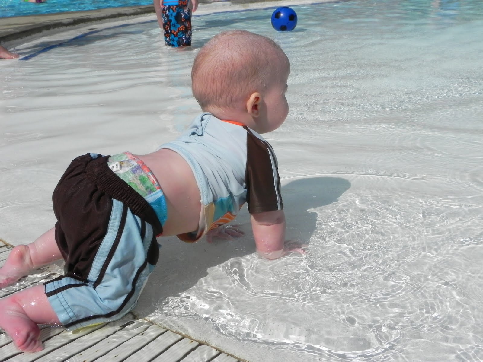 I also took Little Man swimming for the first time. He had a lot of fun. He didn't really swim in the water but he crawled around and splashed himself and I. Chan did some dives off the diving board, he went off the high board once then he didn't do it again. I caught some action shots of him doing front flips off the low diving board though. I think both boys had a great time.