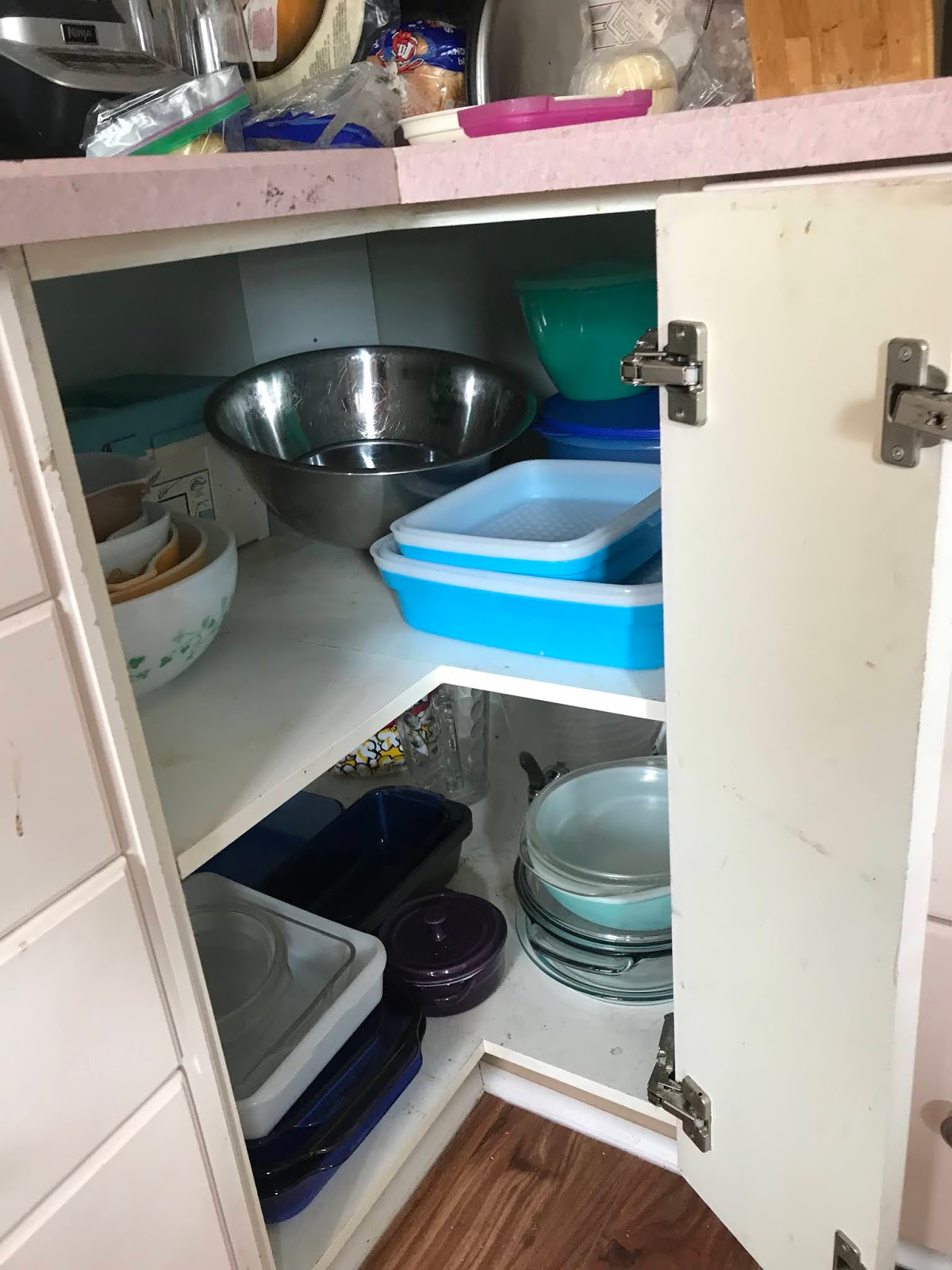 These corner cupboards are the bane of my existence in my kitchen they are always cluttered and things just don't fit properly in them, and those large drawers, although a good idea in theory are just asking to get messed up. So starting in one cupboard and making my way to the other cupboards I slowly cleaned my way to being organized.